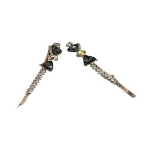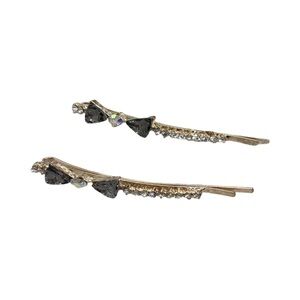 Stylish hair clips featuring black stones and silver accents. Perfect for adding a touch of elegance to any hairstyle.