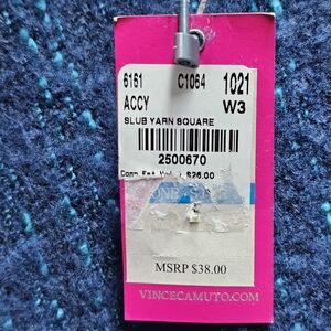 Beautiful Vince Camuto women’s scarf in a soft blue tone with teal thread woven throughout for a subtle, textured look. Incredibly soft, lightweight, and cozy. New with tags — original retail $38. Finished with fringe around the edges for a stylish touch. Measuring approximately 52" x 48", this luxuriously soft, ultra‑warm scarf drapes beautifully and can be styled multiple ways—from a classic wrap to a chic shawl. Add a pop of color and texture to any outfit while keeping you warm and stylish.