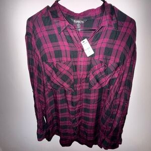 Beautiful soft black and purple plaid Express top