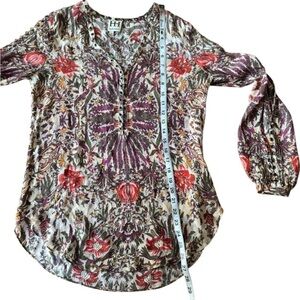 NWOT Haute Hippie Silk Blouse Rivet Link Accents Floral Top Shirt