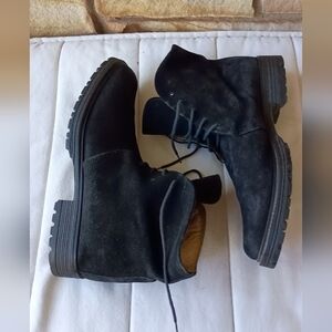 Stylish black suede ankle boots with lace-up design. Perfect for any occasion.