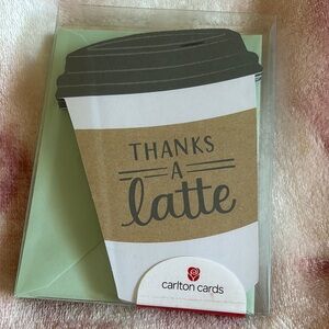 Express your gratitude in style with these Carlton Cards “Thanks A Latte” Coffee Cup Thank You Greeting Cards, Set of Ten with green envelopes, boxed set. NWT Featuring a charming coffee cup design in brown and black, this card is perfect for any coffee lover. Manufacturer sealed, measures 4.25” wide by 5.75” tall by .75” deep.