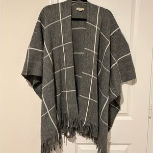 Elegant charcoal throw with checkered pattern. Features stylish fringe edges. Ideal for a chic home accent.