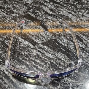 Stylish Oakley sunglasses. Clear frame. Blue mirrored lenses. Perfect for any occasion.