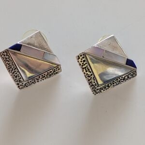 Vintage Native American Mother of Pearl and Lapis Earrings