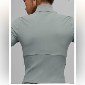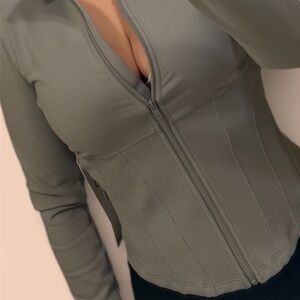 currently sold out online. Firm on price NEW Airbrush Full Zip Corset- Small in Lunar Grey. True to size fits a 4-6. Fitted yet not skin tight. body contouring, comfortable and flattering. Workout, hangout, run errands and look fabulous. Jacket has 2 front pockets and thumb holes/hand cover option