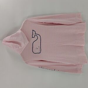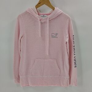 Vineyard Vines Hoodie Pink White Stripe Size Small Sleeve Wording Whale Back