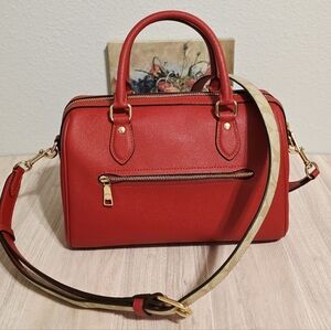 Coach Rowan Satchel Bag Purse Red Leather Crossbody CH322 + Swagger Chain Charms