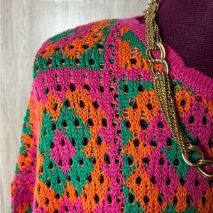 DAVI & DANI Vibrant Colorful Crochet Geometric Knit Sweater