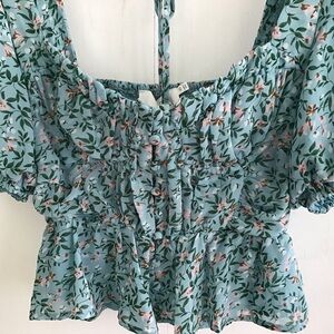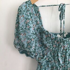 Astr The Label Clairmont Blue Floral Puff Sleeve corset milkmaid coquette top xs