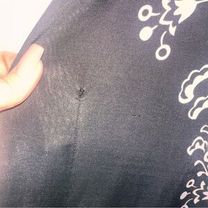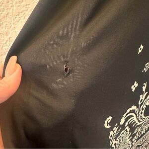 The intricate paisley and floral design gives it a chic, bohemian vibe, making it great for casual outings, resort wear, or festival fashion. (Used to have a tie around waist, still small feeding holes in sides-pictured!)