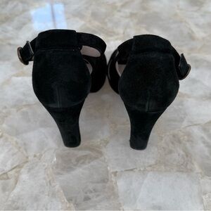These awesome black velvet sandals have such a nice, chunky heel that makes for easy striding, standing and dancing! Perfect for a night out, work, wedding, and formal events.
