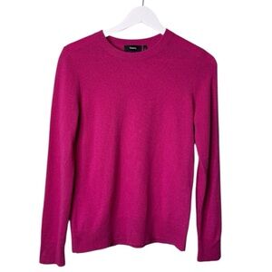 Theory women’s 100% cashmere drop shoulder sweater in “royal raspberry” pink. Size medium.