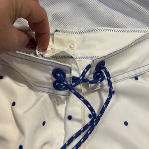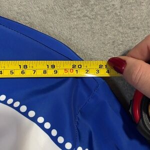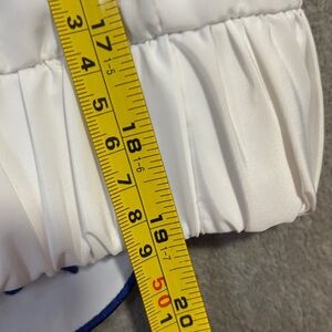 Stylish blue and white patterned jacket and shorts set. Features intricate designs and tassel details.