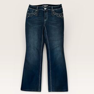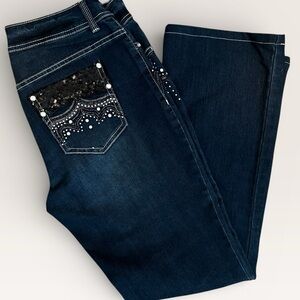 Chico's Platinum Dark Blue Flare Jeans with Stud & Sequin Detail C228