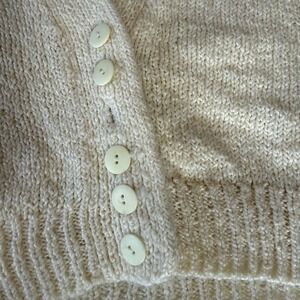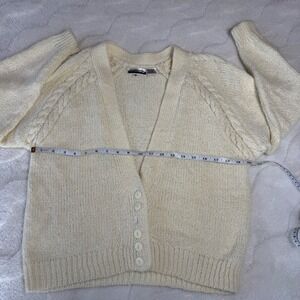 Contrasts Cream Cable Knit V Neck Button Up Cardigan Sweater Women Size S