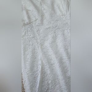 •The dress features a romantic V-neck design that frames the face beautifully and highlights the collarbone. The delicate lace detailing with floral patterns adds a unique touch of femininity and vintage charm