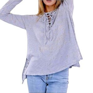 ANTHROPOLOGY MARONIE Hi-Low Distressed Hooded Top