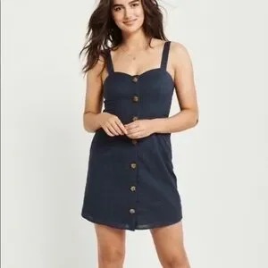 Abercombie & Fitch women's Navy full button down babydoll mini overall dress XS