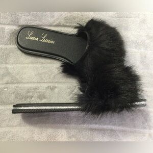 Lauren Lorraine Black Fluffy Sandals Size L Women’s Size 10