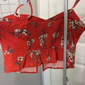 Chic orange red camisole with floral pattern. Button front detail. Perfect for casual wear.