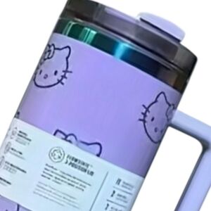 NEW IN BOX! 40oz STANLEY LIMITED EDITION purple travel mug. Features adorable iridescent rainbow HELLO KITTY design. Durable and easy to carry.