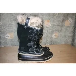 Sorel Joan of Arctic Black Leather Winter Boots 9 / 41 1/3