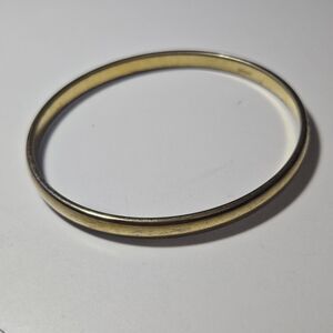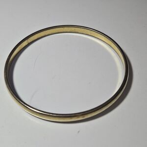It features a sleek and simple design without any stones, making it perfect for any occasion. The bangle style bracelet is perfect for adding a touch of elegance to any outfit. This piece is great for collectors or anyone who loves unique and timeless jewelry.