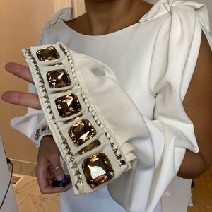 Elie Tahari jewel cuff split sleeve white dress