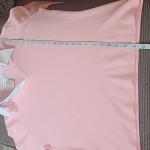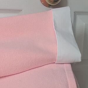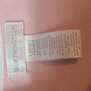 Long Sleeve, V Neckline, Has Attached White Shirt Inset, and Sleeve Cuffs, Baby Pink in Color, Great Condition, Size Large.