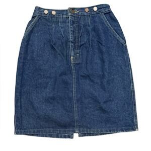 Vtg 80s Middy British Raj Denim Skirt Size S High Waist Utility Heritage Pleated