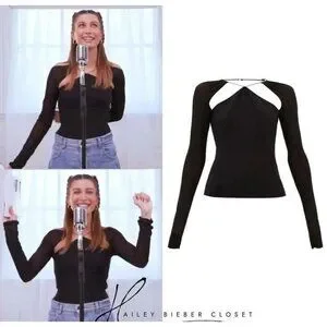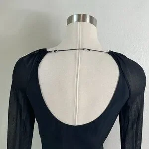 Nensi Dojaka Womens Large Black Sheer Long Sleeve Cutout Top Blouse