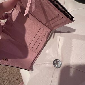 Please only serious buyers do not tell me to text or call I only sell within Poshmark thank you! This wallet is like new no wears or tears I got a bigger one so no longer using this one , it does come with box and dust bag! Chic Louis Vuitton wallet featuring iconic brown monogram. Accented with a pink button closure. Adds luxury to daily use.