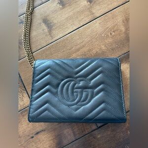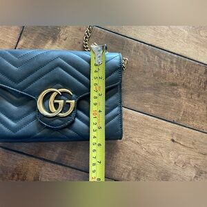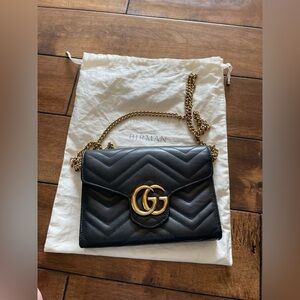 Authentic Gucci Marmont GG Chevron Quilted Leather Black Bag