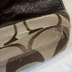 Coach Signature Jacquard Canvas & Patent Leather Hobo Shoulder Bag Khaki/Brown