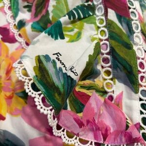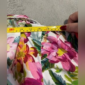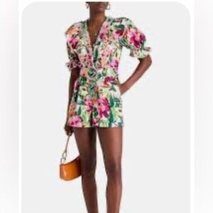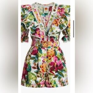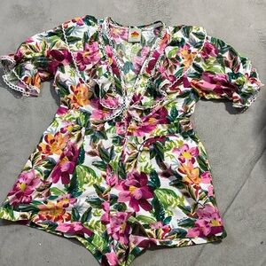 Vibrant floral romper with ruffle details. Perfect for a bold look.used, like new, has a belt