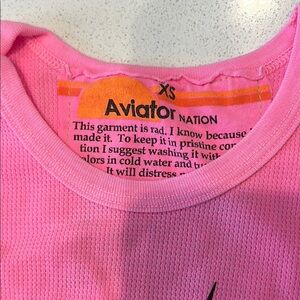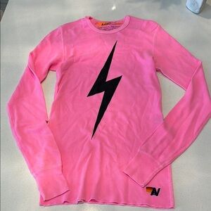 Aviator Nation Pink Long Sleeve Tee with Black Lightning Bolt