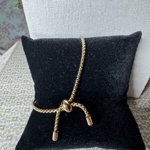 This stunning gold bracelet features sparkling crystal accents. Adjustable clasp, perfect for adding a touch of elegance to any outfit.
