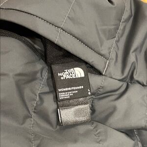 Charcoal quilted and black fleece reversible jacket by The North Face. Warm and stylish with a zip closure. In excellent shape!!
