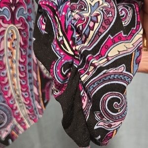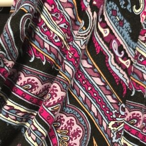 Awesome. Stretchy Chico long gathered sleeve cowl neck. Colorful paisley design with black background. Features pink, purple, and black hues. Chico size 2 is the equivalent to regular size 12.