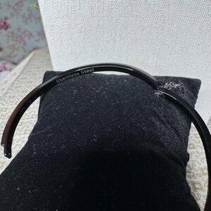 Elegant stainless steel black bangle bracelet with engraved details. Perfect for any occasion.
