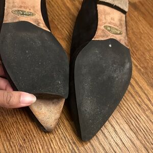 Chic black flats with pointed toes. Crisscross strap detail. Perfect for versatile wear. Sole needs repair. Priced accordingly.