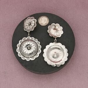 navajo sterling silver vintage stamped concho flower dangle post earrings