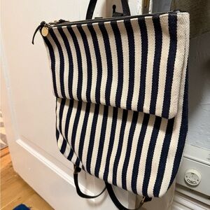 Clare V - RARE - Striped Navy and Cream Flap Backpack