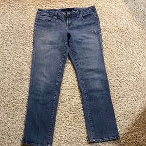 Stylish dark blue jeans by Refuge. Straight leg design. Perfect for casual wear.