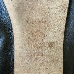 TORY BURCH black nappa leather Flower Ballet flats, 9.5.