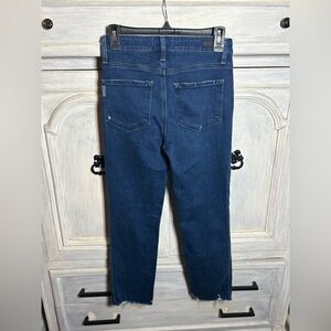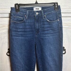 Paige Cindy Crop Dark Wash Straight Leg Raw Hem Stretch Classic