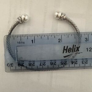 This elegant silver bracelet features stunning pearl accents, perfect for adding a touch of sophistication to any outfit. Ideal for both casual and formal occasions.