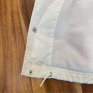 Obey Worldwide Men’s White Button Up Windbreaker Jacket Size Medium. Collared, button snap closure, sleeve snap buttons, pull string bottom. Used but in great condition. No major flaws.