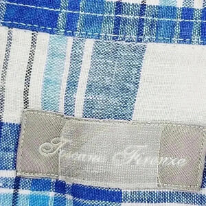 Toscana Firenze 100% Linen Button down Short sleeve Plaid Men's Shirt XL 7057